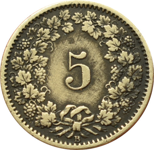 Úvod »Celý svet» Švajčiarsko 5 Rappen 1874 B
